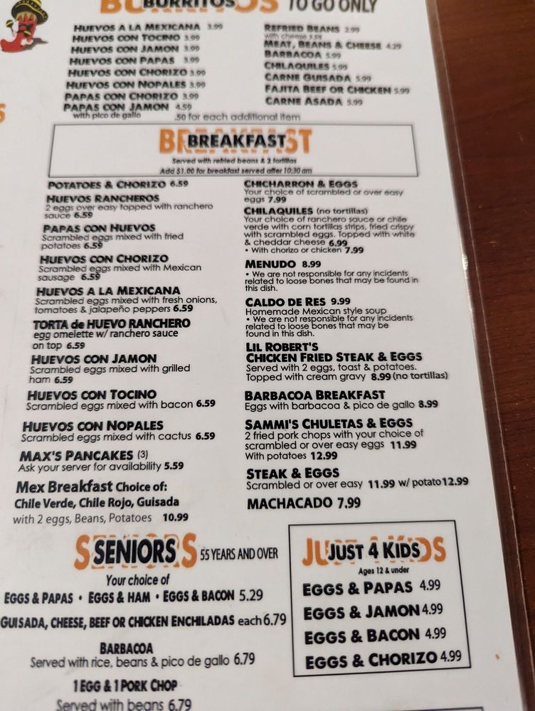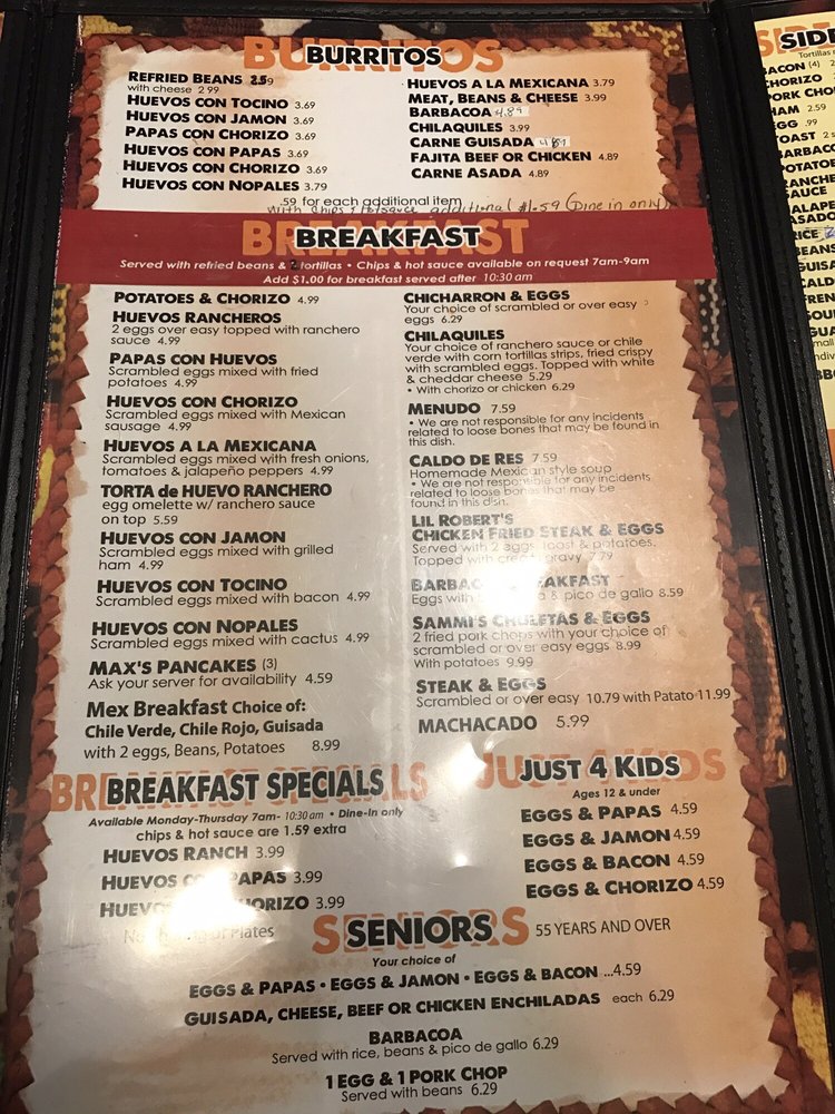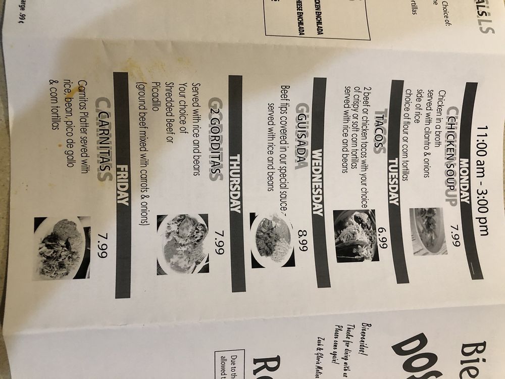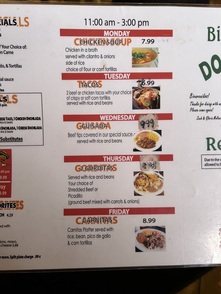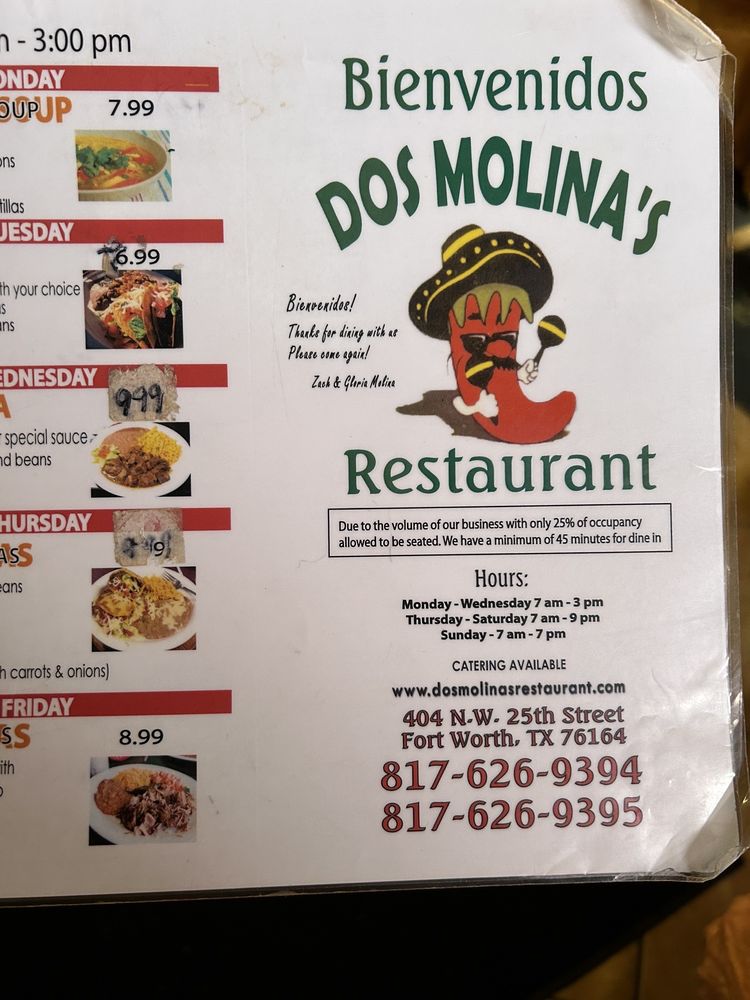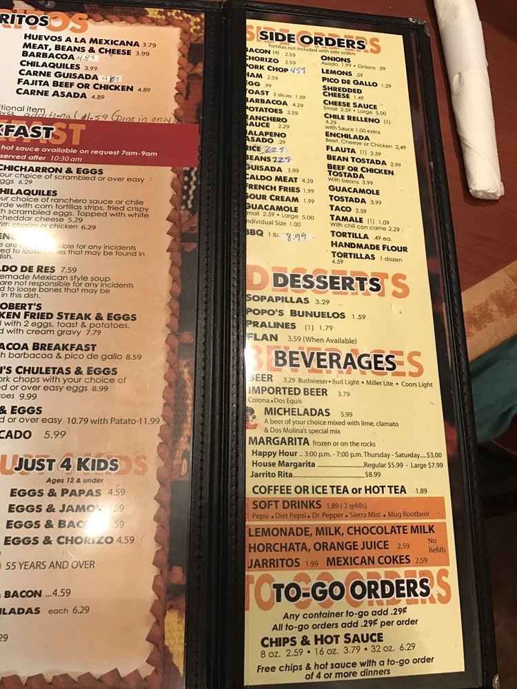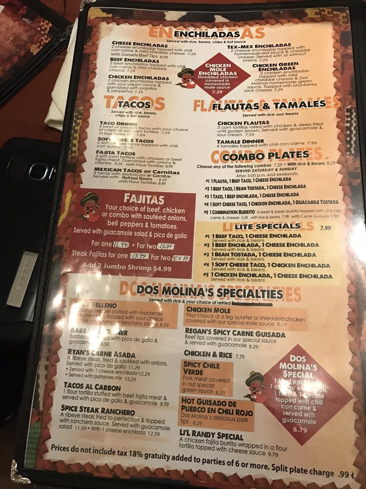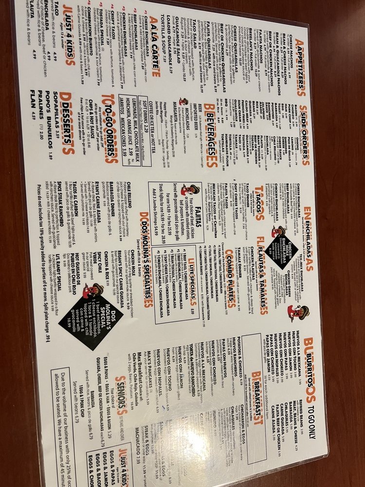 Dos Molina's Mexican Restaurant Menu